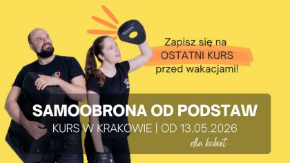 "KURS SAMOOBRONY oczywiście poleciłabym innym! Atmosfera super. Prowadzący cierpliwi, kompetentni i pomocni. Po pierwszych zajęciach już poczułam większą pewność w ciele i w głowie! Najbardziej podobała mi się mnogość różnych technik (w tak krótkim czasie trwania kursu!), indywidualne podejście do każdego, poprawa błędów, ćwiczenia tłumaczone w bardzo klarowny sposób." - to opinia Joanny, naszej uczestniczki. Dołącz i Ty!