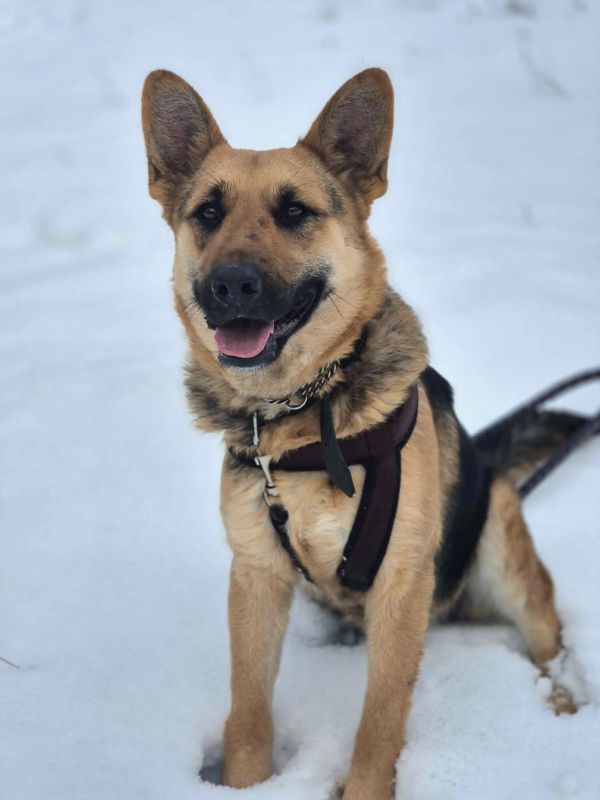 Jaka jest Mona? To młoda sunia, w typie owczarka, która ma w sobie mnóstwo pozytywnej energii i ciekawości świata.