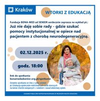 Wykład online: Gdy dom to za mało - gdzie szukać pomocy instytucjonalnej w opiece nad pacjentem z demencją, chorobą otępienną, chorobą Alzheimera